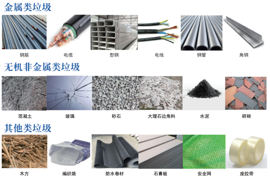 (三)建筑垃圾源头分类。规划坚持以末端处理为导向,对建筑垃圾进行细化分类处理,进一步推动建筑垃圾资源化利用。工程渣土主要分类为耕植土类、建筑原材料类和其他可利用类;工程垃圾及装修垃圾主要分类为金属类、无机非金属类和其他类。